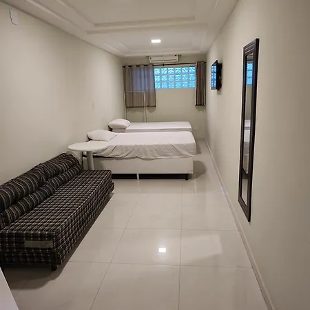 Central Praias Suite 1 apresenta um ambiente acolhedor com Wi-Fi gratuito e camas familiares. A acomodação está localizada a 1.5 km da Praia do Forte e a 7 minutos do Estádio Municipal Alair Correia. É perfeita para famílias ou grupos, garantindo conforto e praticidade. Na propriedade, os hóspedes têm acesso a quintal e bar.